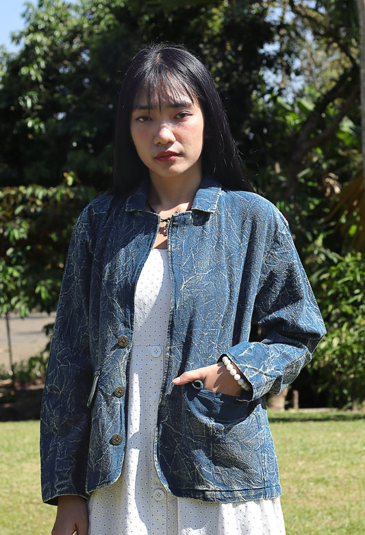 Japanese Yukata Unisex Robe Shirt In Raw Cotton Woodblock Prints