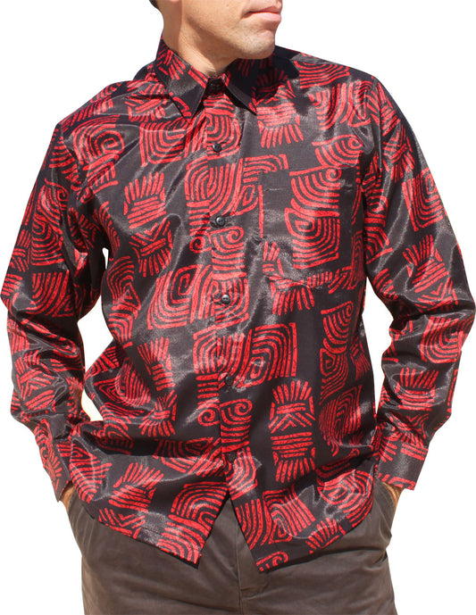 RaanPahMuang Light Smart Classic Cut Buttoned Thai Silk Artistic Long Sleeve
