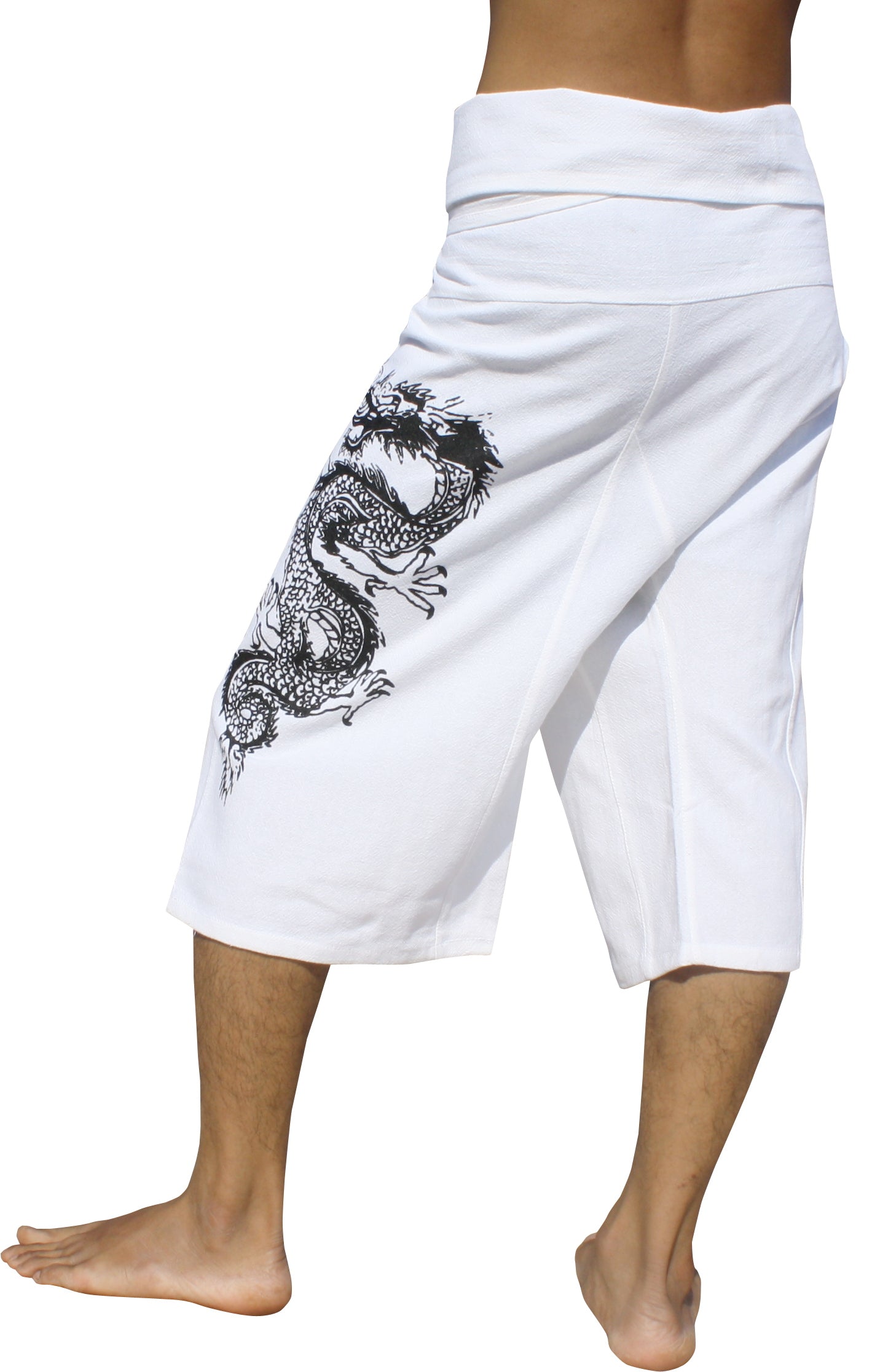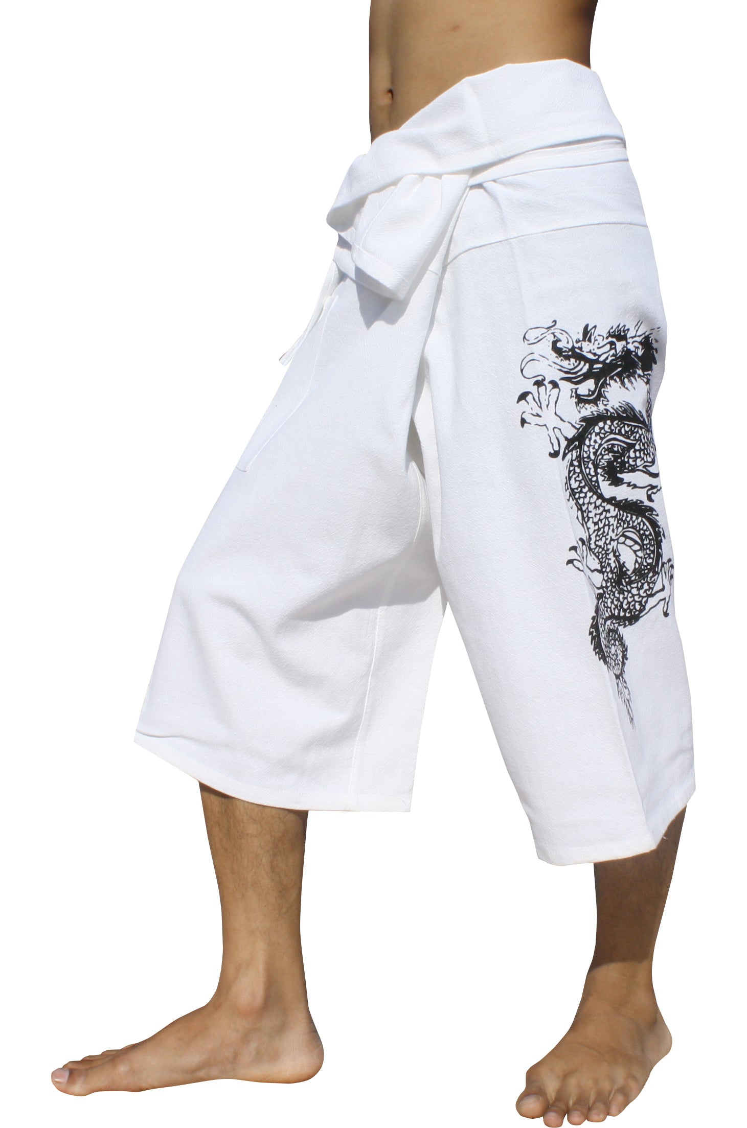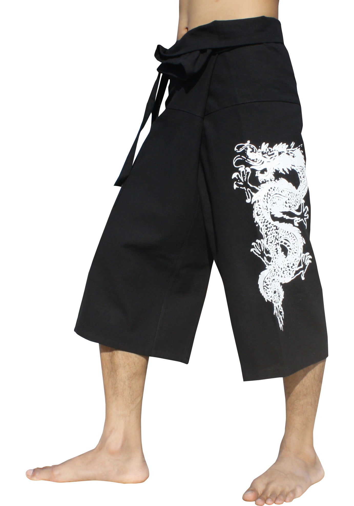 RaanPahMuang Cotton Fisherman Capri Wrap Shorts Tattoo Dragon Print