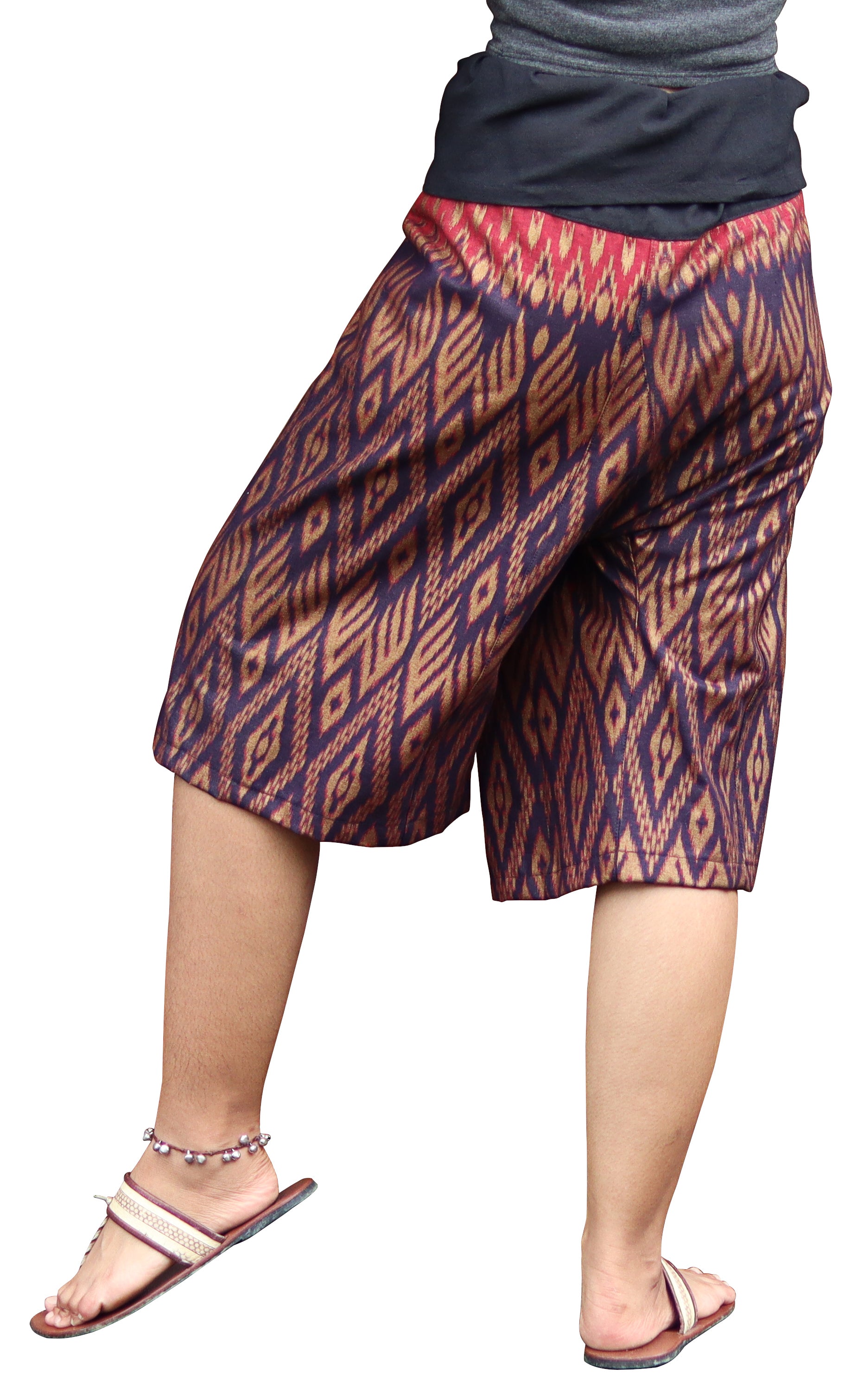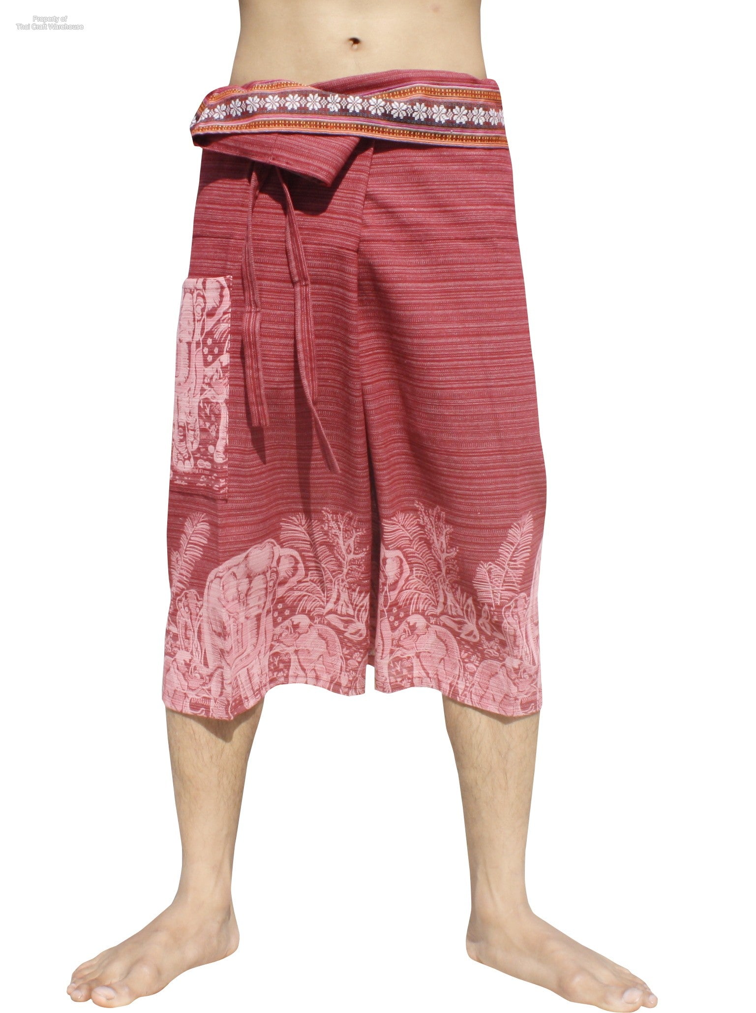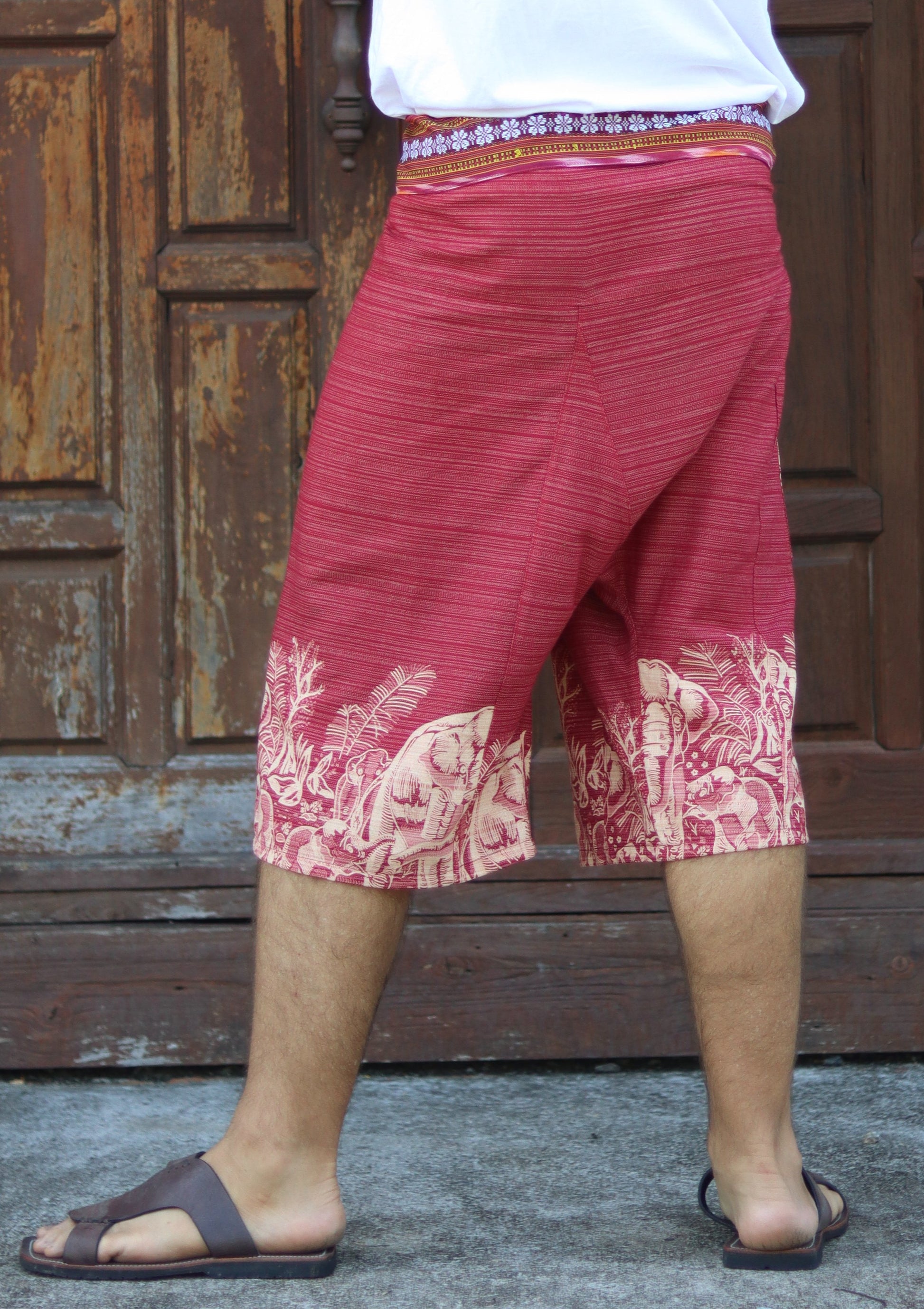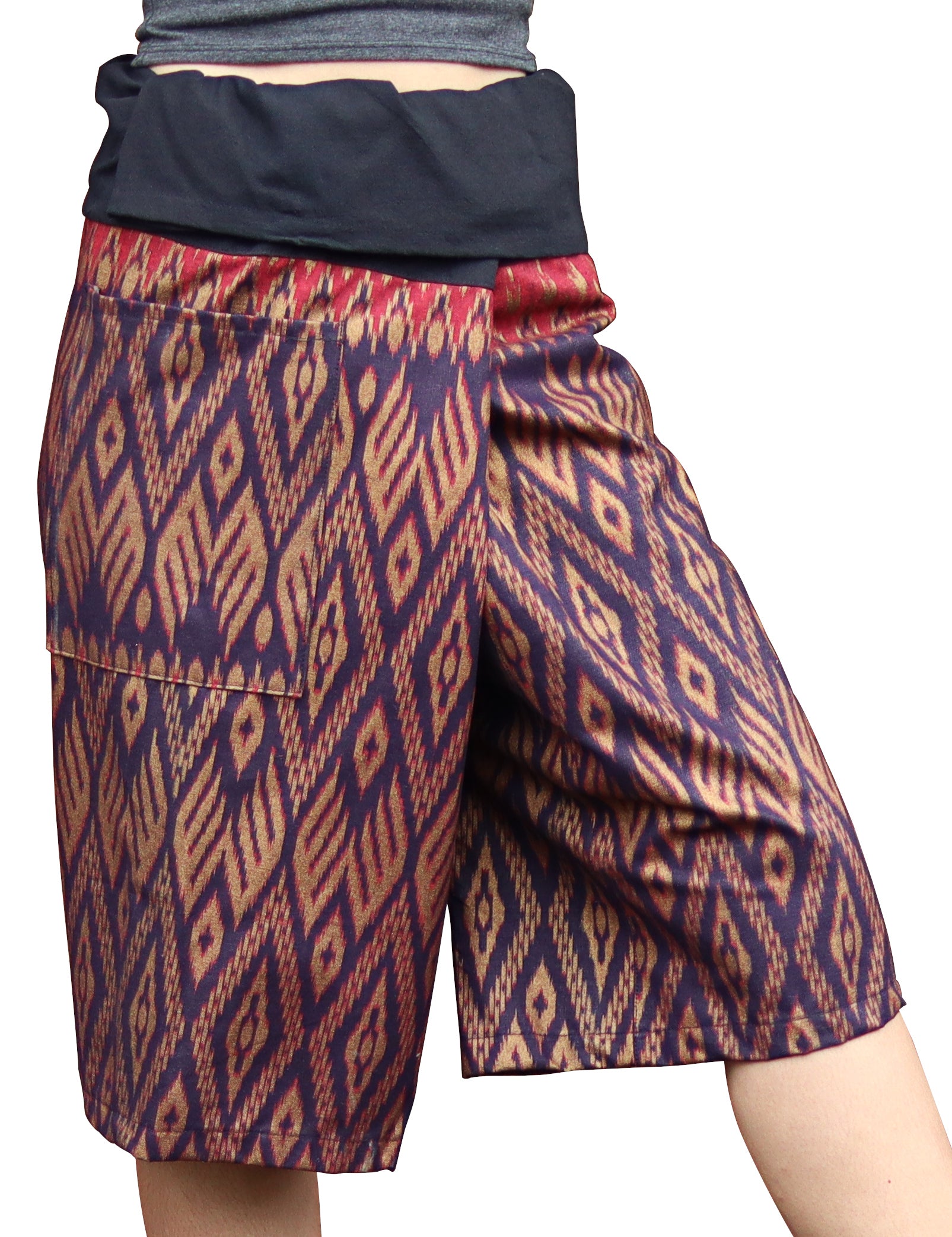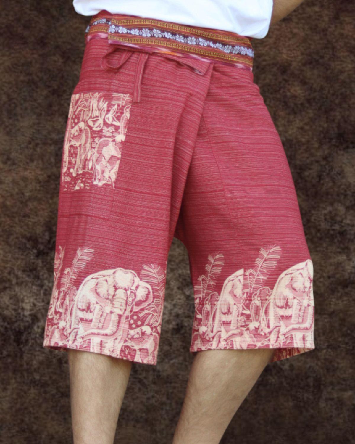 Stripe Cotton Fisherman Shorts North Thai Woodblock Artwork and Belt Art