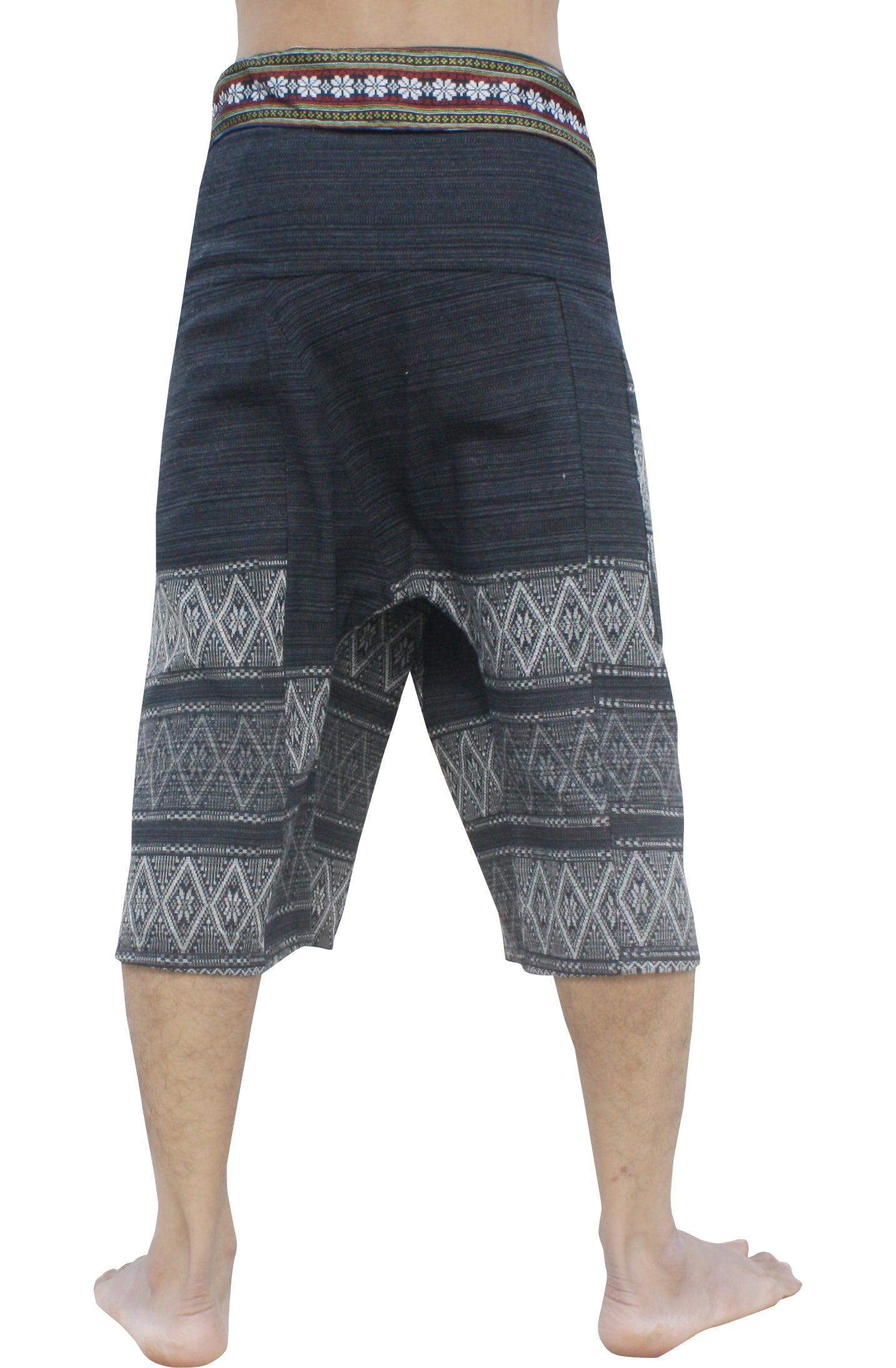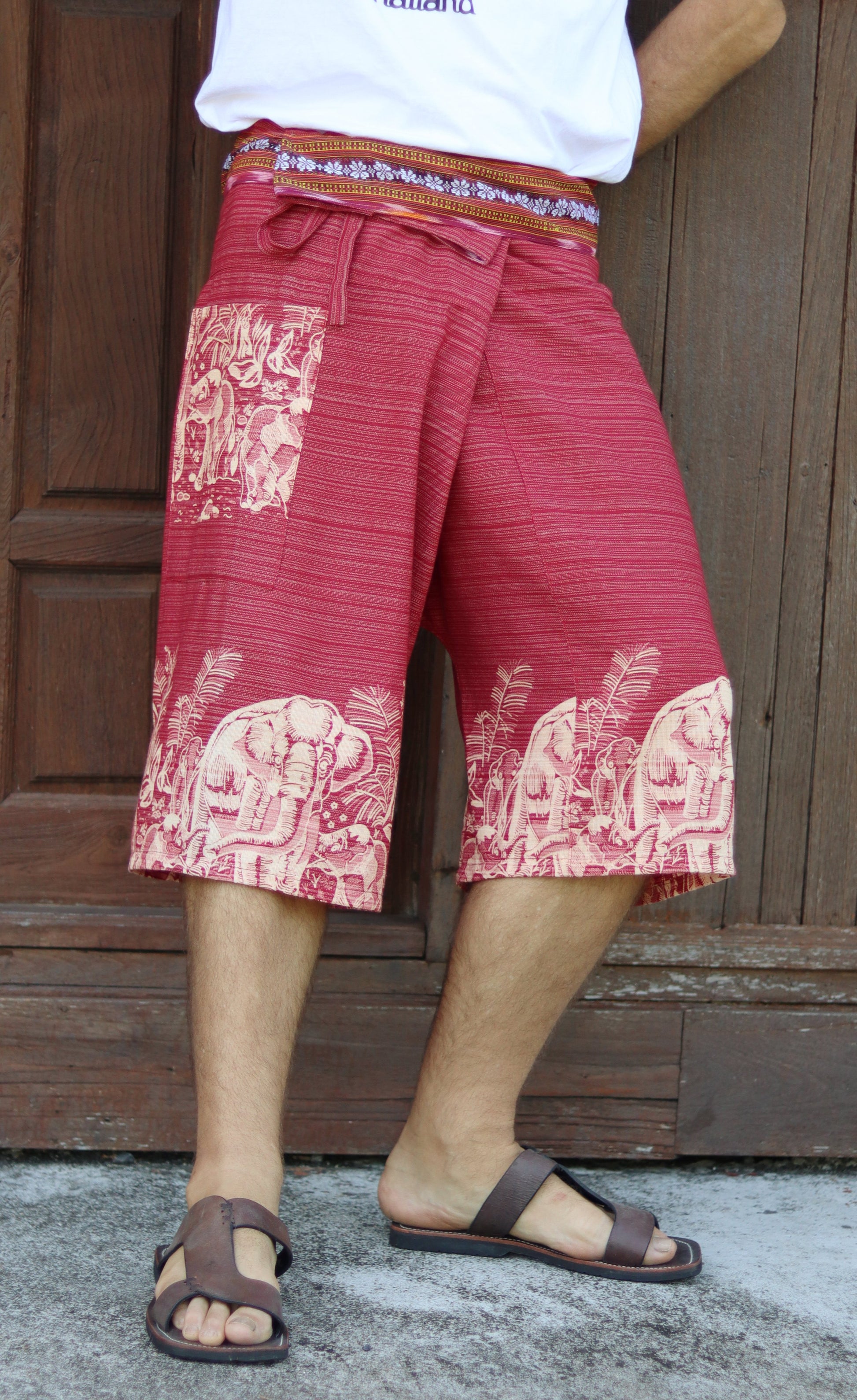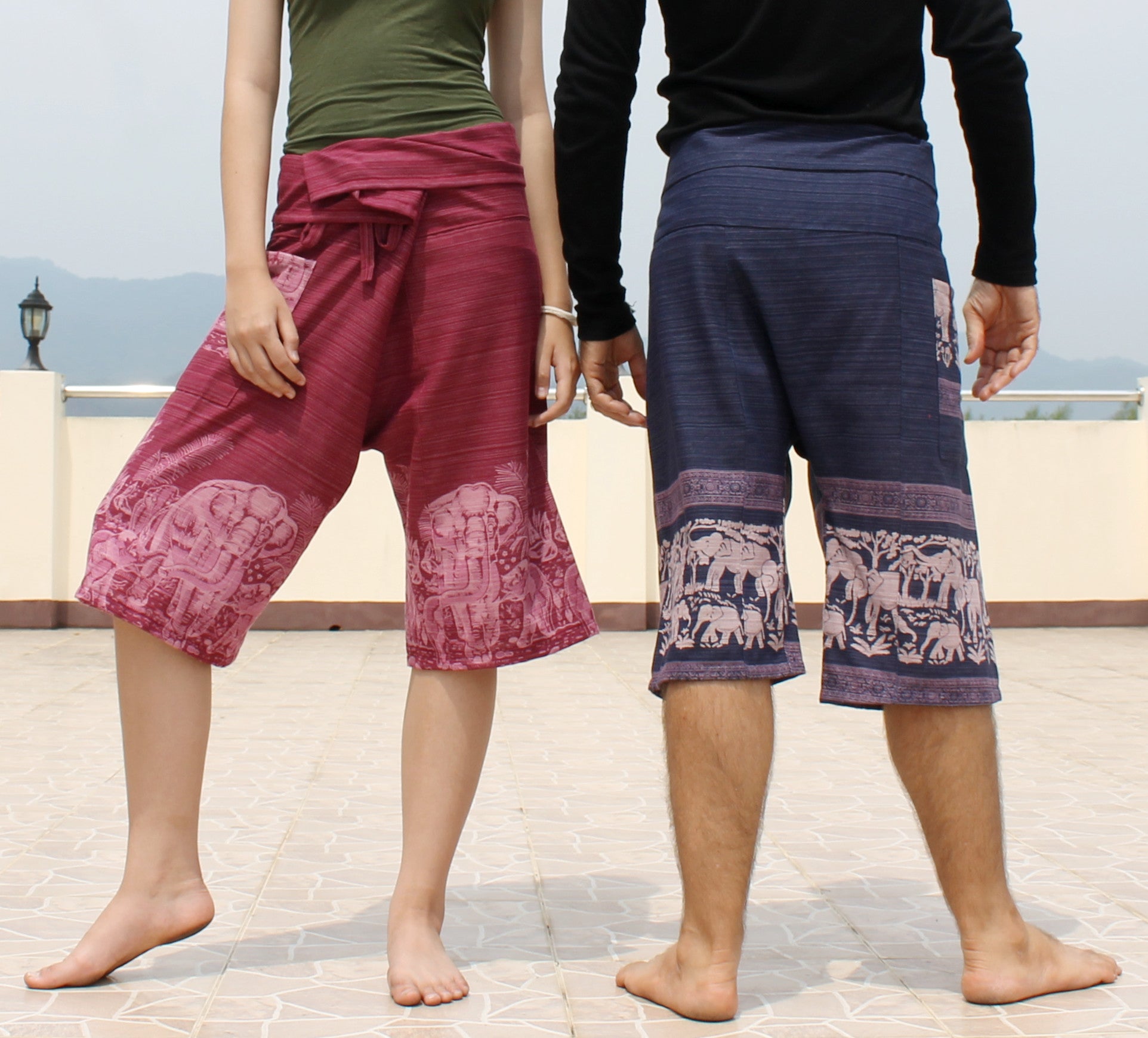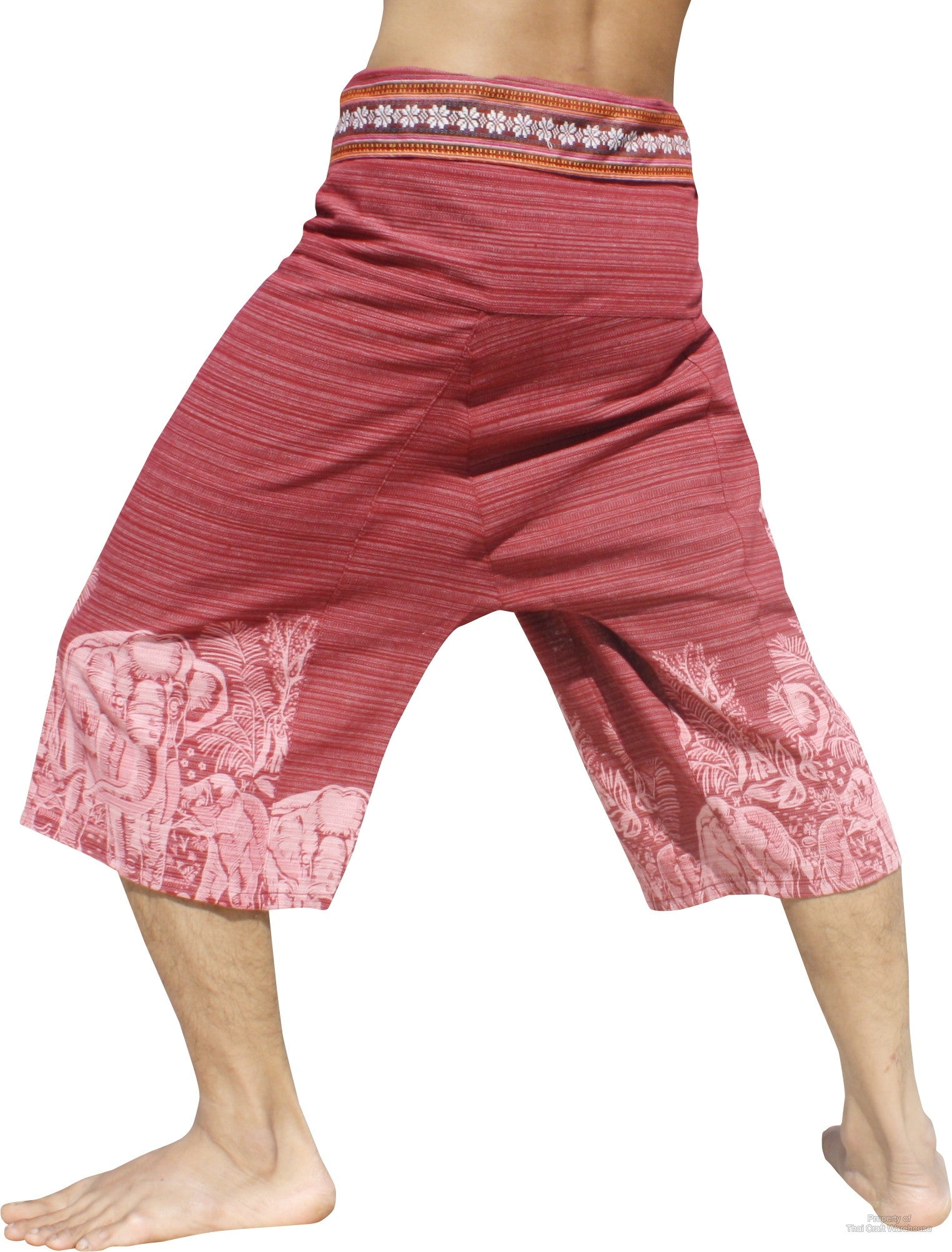 Stripe Cotton Fisherman Shorts North Thai Woodblock Artwork and Belt Art