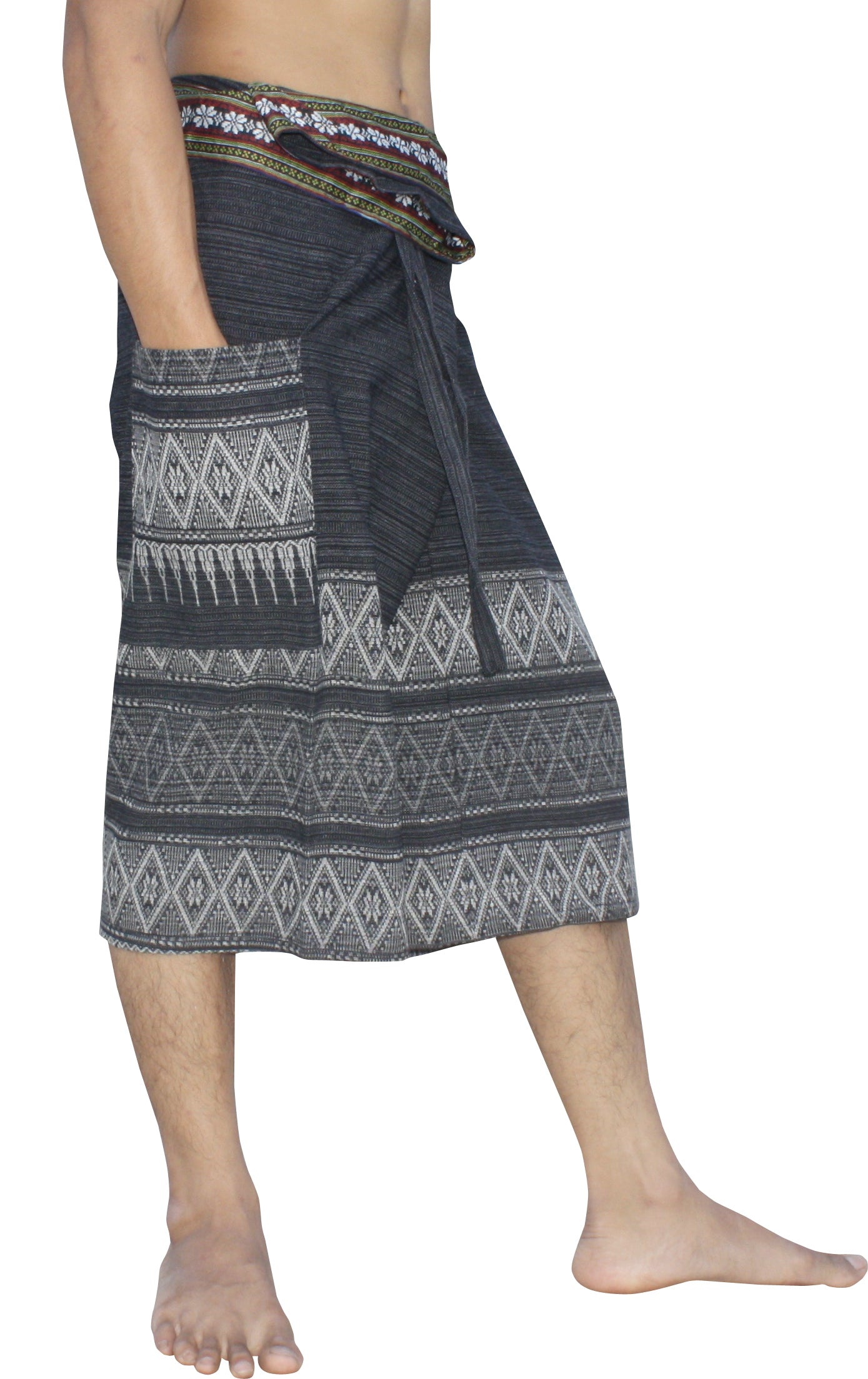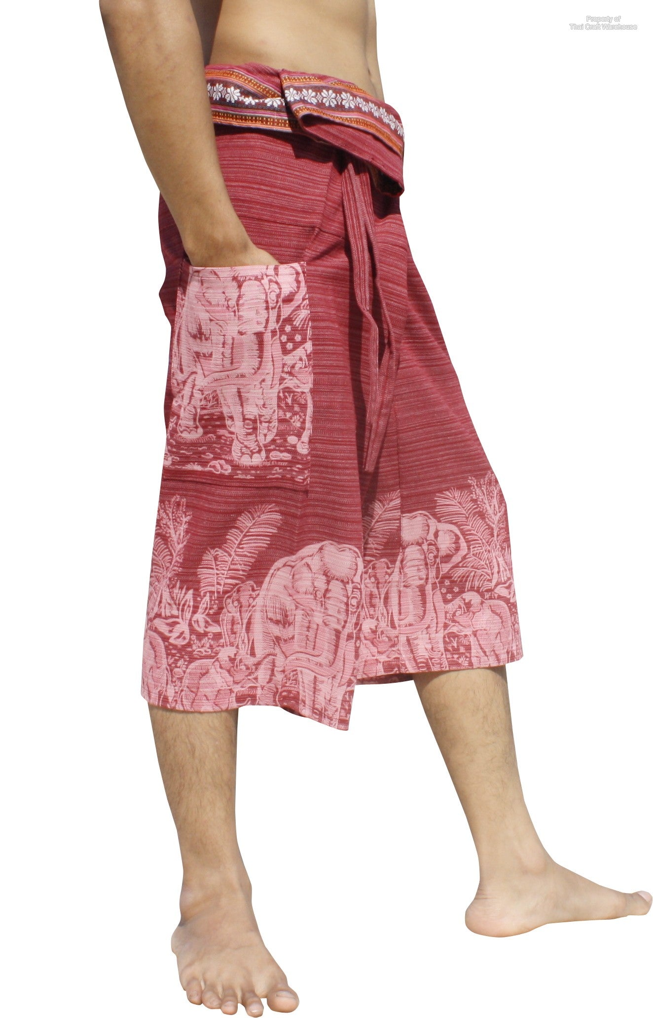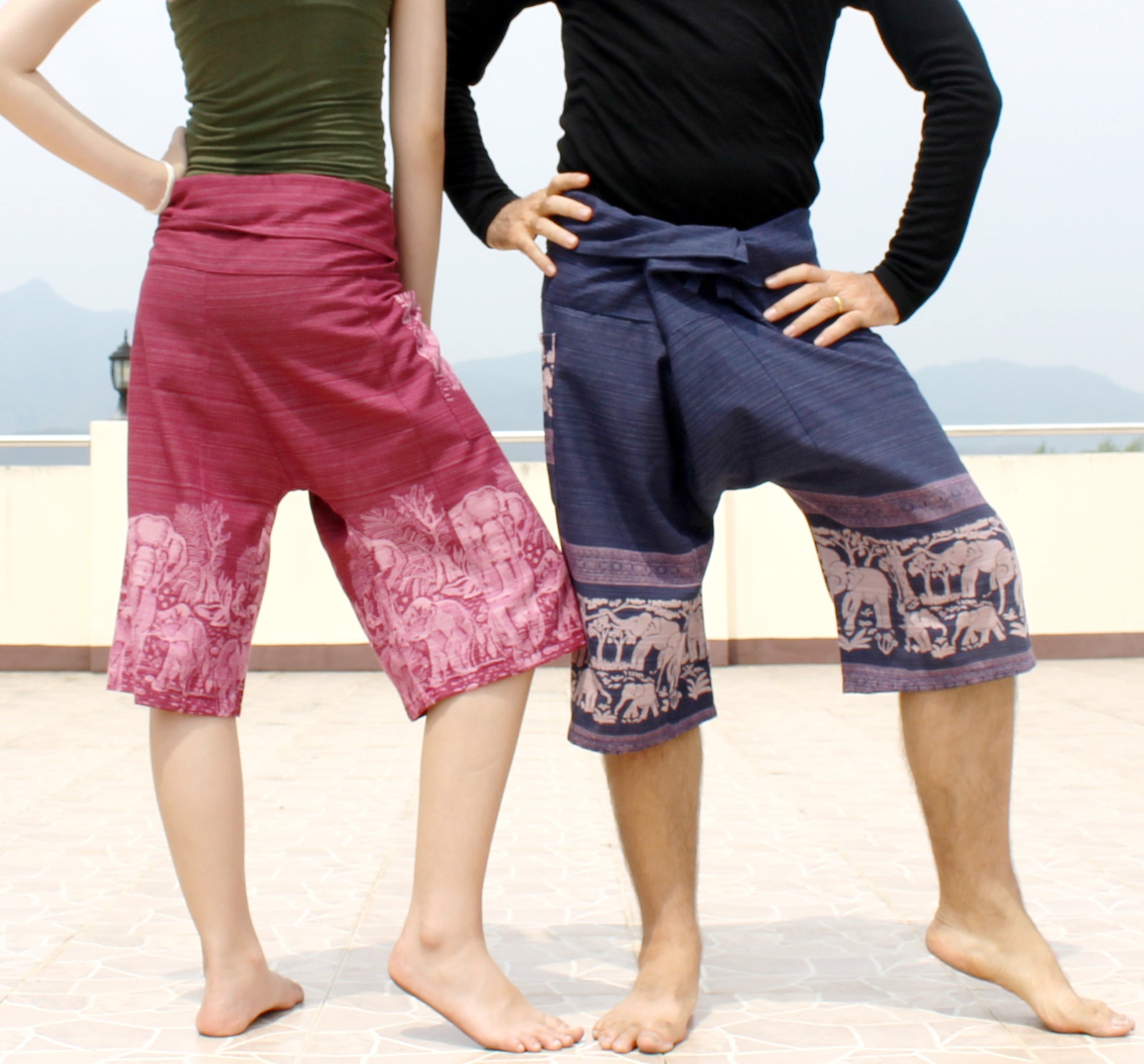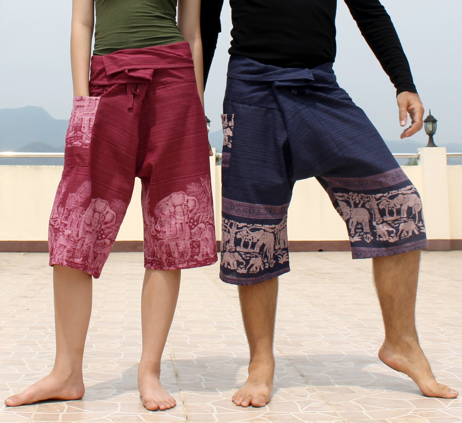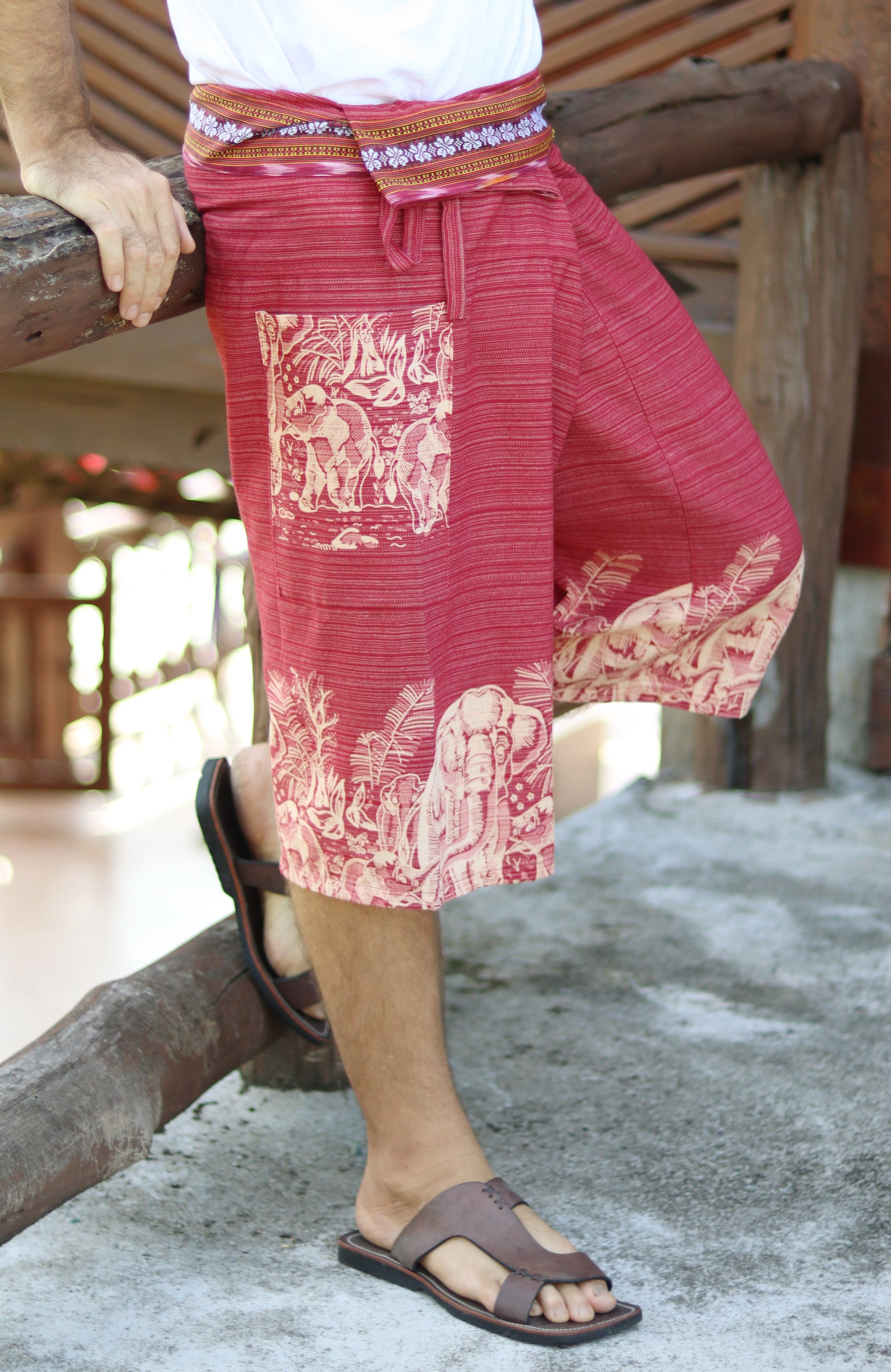 Stripe Cotton Fisherman Shorts North Thai Woodblock Artwork and Belt Art